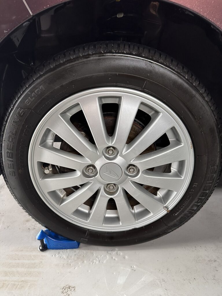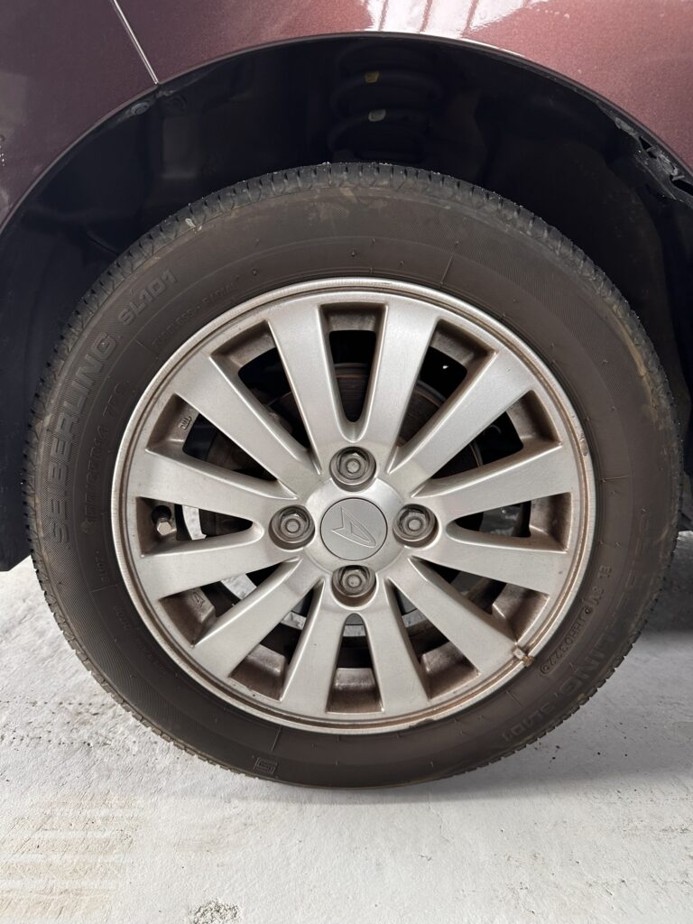 施工前:雨や砂埃で汚れたボディとブレーキダストまみれのホイール。
