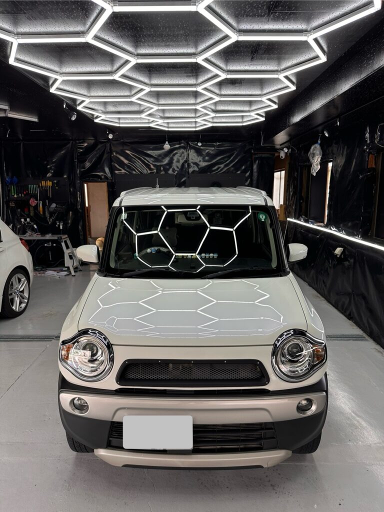 軽自動車でも同じように、施工前に 純水手洗い洗車・鉄粉除去・スケール除去・油分除去・磨き(必要に応じてプラス)を行います。