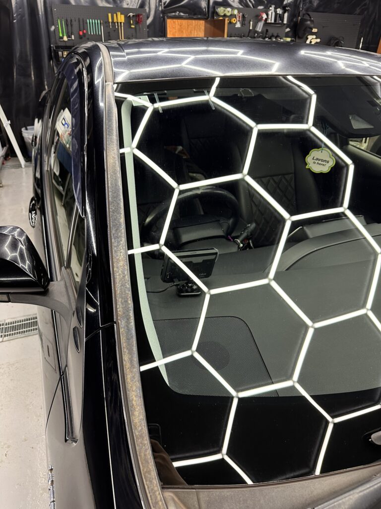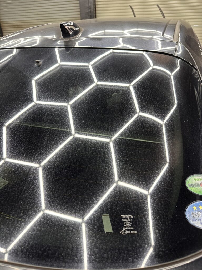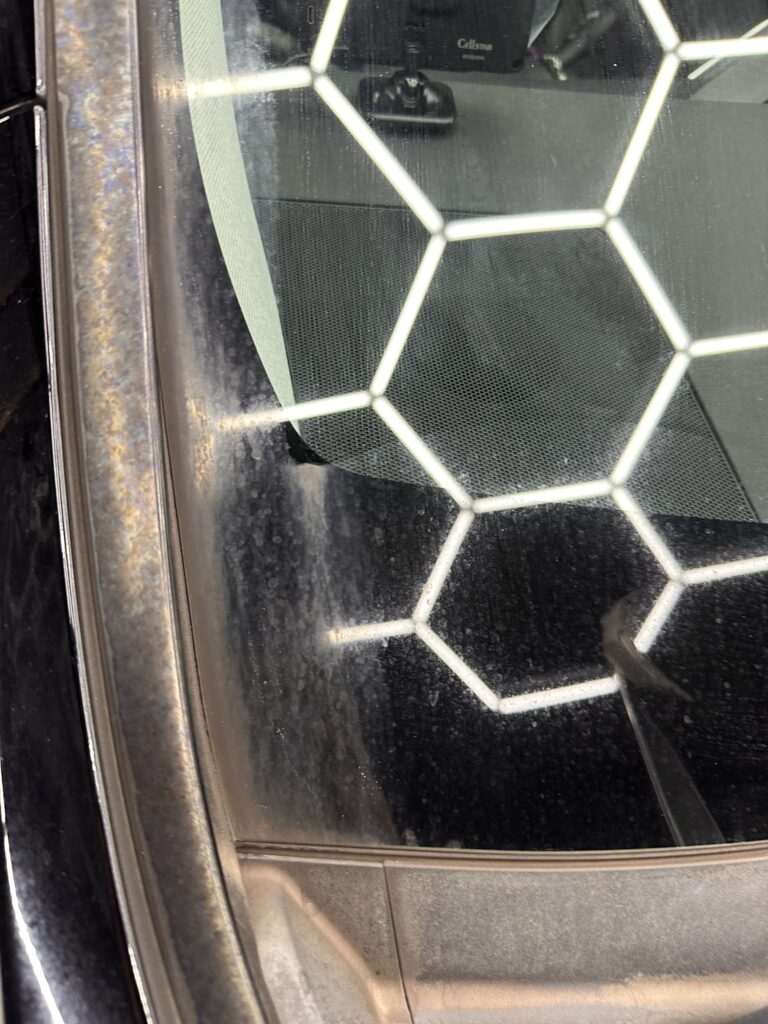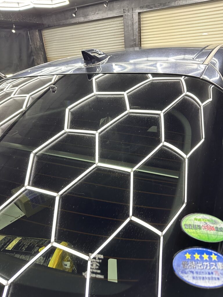 このお車はフロントとリアの窓ガラスについた鱗(ウロコ)除去のご依頼でした。
